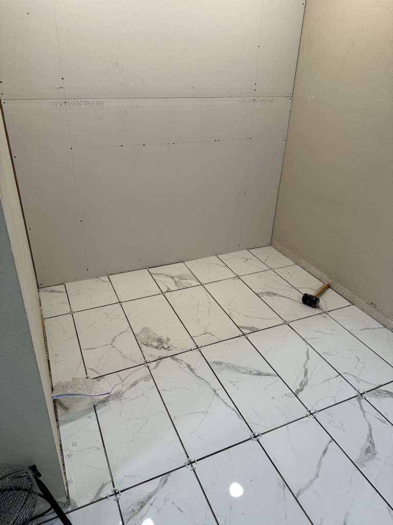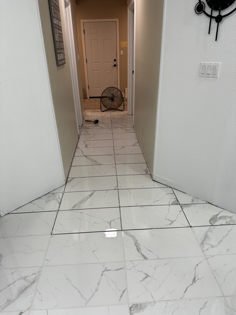 I can say, I’m happy to report all of the tile in the kitchen, hallways, atrium and entryway is DONE! We have some grouting left, but it is finally all down. The grouting won’t take long and then we can do the finishing touches. Then we will be onto the master bedroom and bath. We have water lines to move again but should not be as bad as the kitchen. There will be some walls getting moved and we plan to do some unique things with the front windows, but all in all, we don’t think it should take that long. The kitchen was definitely a killer!