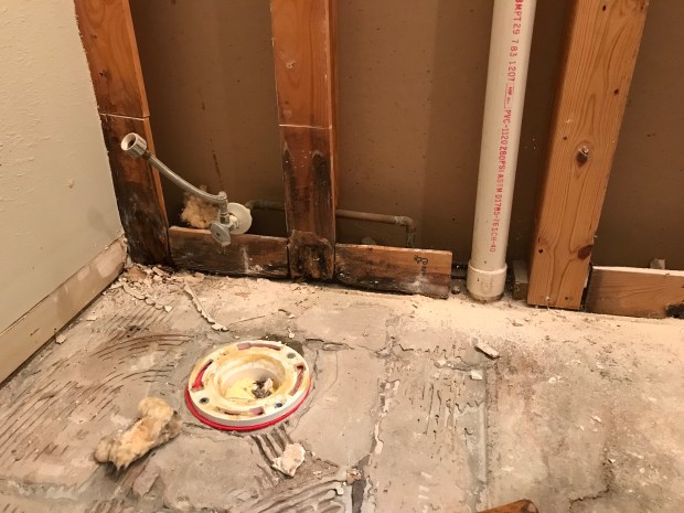 The destruction has begun on the half-bath. The laundry is right across the hall and that will start once the half-bath is completed.