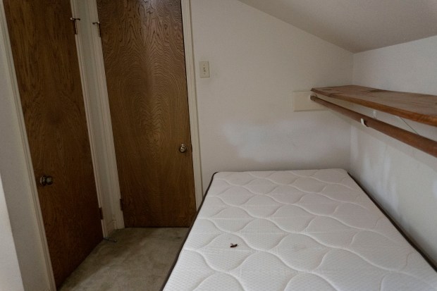 Well I don’t know who would put a twin bed in a closet, but that is what we found when we closed. This is not under the stairs like Harry Potter, but I do feel bad for whoever had to call this closet a bed room. We got rid of the bed, tore out the carpet and decided this would make a perfect tanning bed room (at least I don’t sleep here). Before we tackled this project though, we put up a “temporary wall” in what I thought would become my office – heck it still might, but the room off of the Harry Potter closet is an open area that will either become the exercise room or my office – I need walls to decide exactly where my office will be. Until I get that decided, the temporary wall will give me some work privacy.