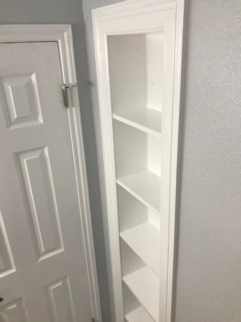 shelving prep – painter’s tape is fabulous to figure out where you want your shelves.