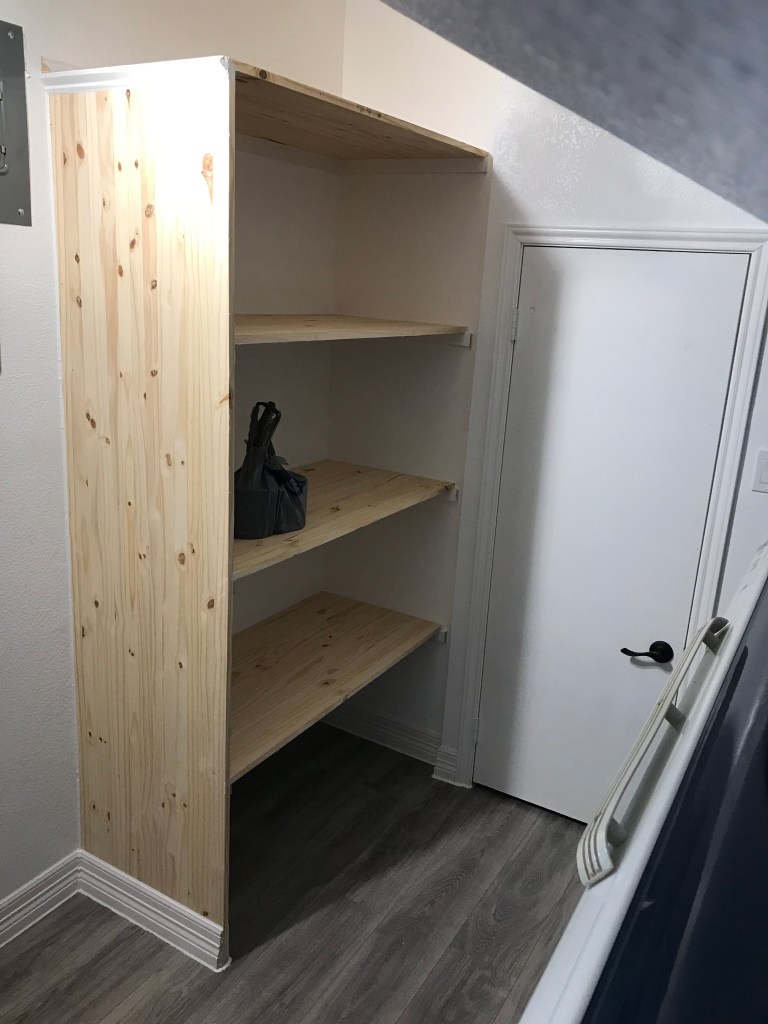 So, Chad having a real job again and him needing to spend some nights in Houston, kinda leaves projects on hold for the weekend. I messed up our Saturday “working” as I was tired of not having local channels, so had Dish Network here most of the day (I won’t go into that chaos)! All is good as it was up and running by Saturday evening so got to see most of the Husker game (yes, this is why we lost as I started watching – according to Ciera) and had my Red Zone for all the NFL action today. The new closet floor is in, trim is up and shelving is built. We just need to paint the trim and the shelving and we will have 1 more room completed! Yahoo!