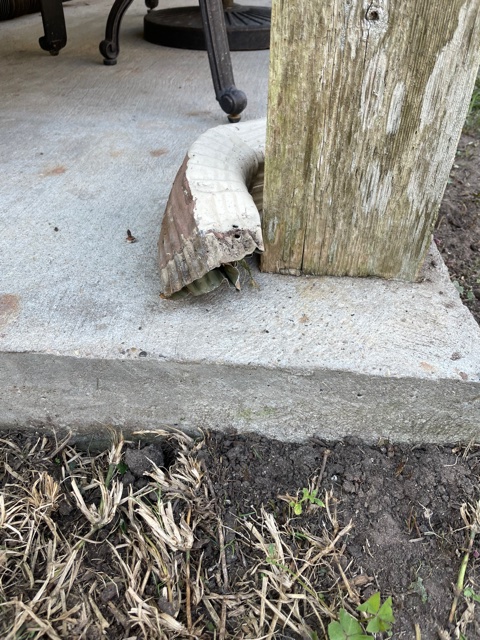 So we should have completed the Harry Potter’s closet (tanning room), but had to take care of some outside work instead. Chad cut down a couple trees in the back and a whole bunch of bushes. We were going to make a run to local landfill to get rid of the debris but have two more trees to take down and thought the debris could sit for a week and then we could have one big load. Well, Rodney decided that was not going to be the plan. Rodney LOVES to hunt “critters” and well, one decided to come visit the back yard (thinking due to the debris) and Rodney made sure to let me know about that critter around 3am Saturday morning. I HATE critters – so change of plans. Below is what happens to a gutter if a critter is trying to get away from Rodney – he’ll just chew the gutter closed, good luck getting out! The picture below is after Chad pulled some of it apart, I’m shocked Rodney didn’t cut his mouth!. We now have a new partial gutter, guess that is a good thing? The debris – well that went to the landfill on Saturday.
