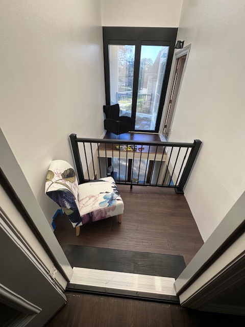 This is a reminder of what is was before and we built in the landings. The far side we had finished and what is open with the beams is what we were still building, but gives you a reminder of the ‘before’.
