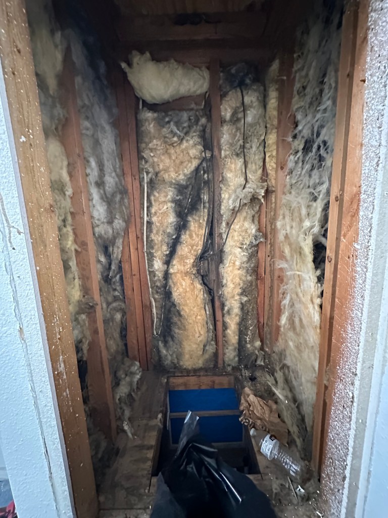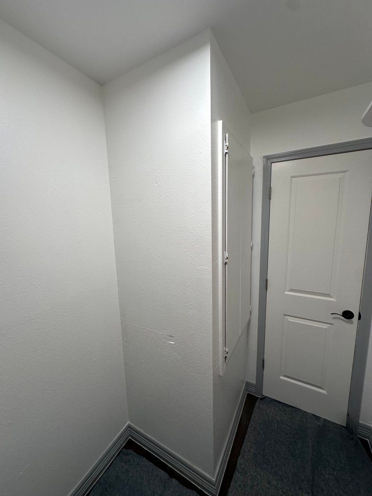 If you recall, we did this closet before we opted to put mini-splits in upstairs. This is where the upstairs AC was…so removed the wall so it is just a big rectangle shaped closet now.