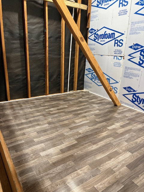 New floor! Just need the last couple pieces and to put the linoleum down.
