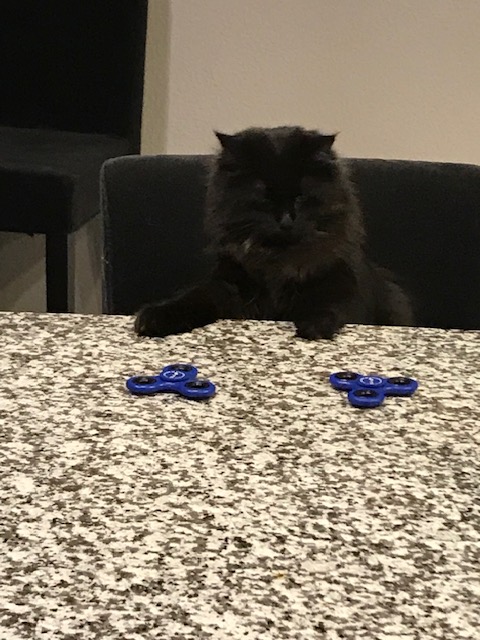 When I would cook, she would sit like this a lot to watch. This is when we introduced her to spinners.