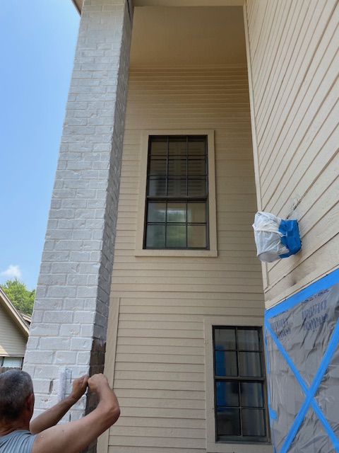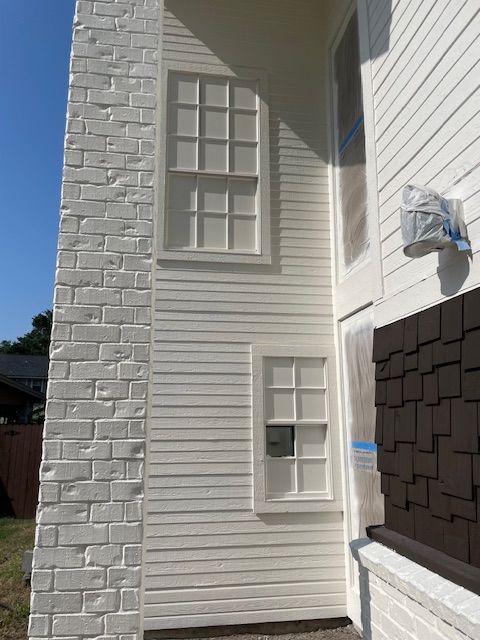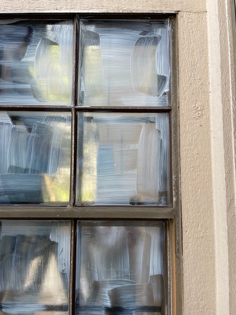 One thing that we tried and we weren’t sure how it would work out is a window mask/peel. You paint a clear coat over the windows, then you paint like normal and peel it off at the end. This actually worked!!!! Plus, we were then able to paint the window trims, so now instead of brown, they are the same cream color as the house. I’m super happy when things like this really work plus that means the new windows can remain a lower priority still.