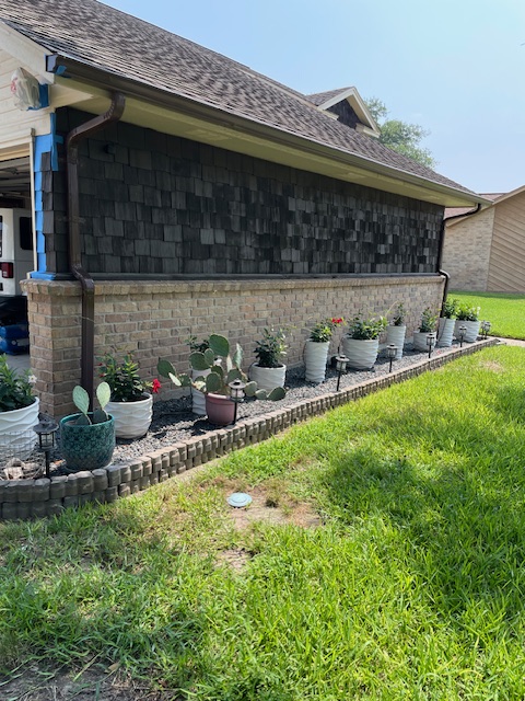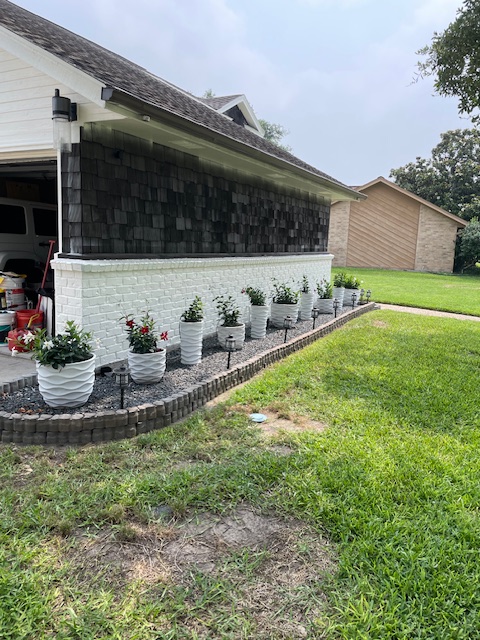 We are spending our Memorial day painting (as I believe I had already mentioned). Surprisingly, it is going very well. We have had a few people drive by and stop and say they think it is looking good as well as a couple neighbors. I’m sure they were all curious of my hodge-podge look prior to this weekend, but glad to say it is all coming together. We still have the bricks in the flower bed to prime/paint and the bricks on the east side of the house (and I keep forgetting about the chimney) and the day is not done, but I knew I would not want to do the blog this evening. We do have to touch up some of the brown on the cedar shingles, but that is to be expected.