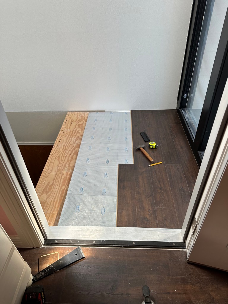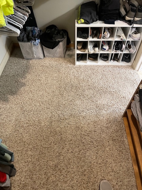 The driving me crazy item was the only carpet left in the house – the carpet in the master bedroom and what is currently the closet. I’d rather walk on concrete (I am getting a couple carpet runners – once Amazon makes their appearance next week) but that carpet was just GROSS and I was done with it. Plus this will allow me to start to map out where I want to move walls with the master makeover.