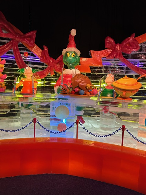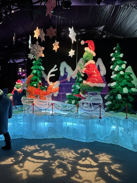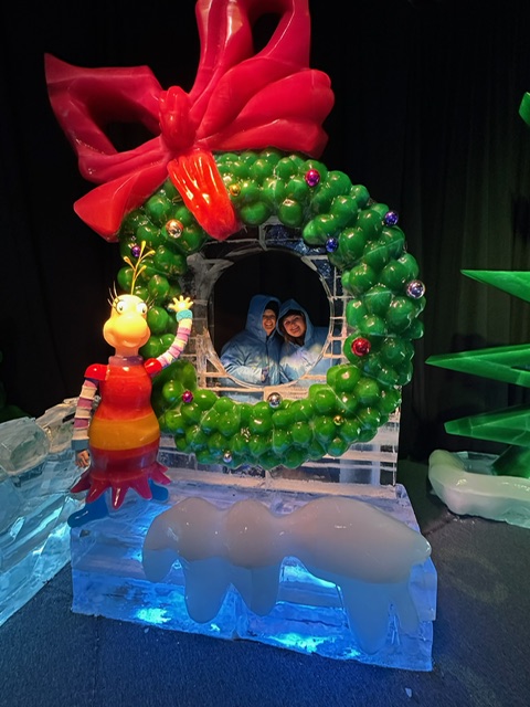 Every year the event has a different theme and this year it was the Grinch. Everything is made out of ice and you are provided a parka to wear. This is my only time I brave the cold and each year reminds me why I have zero desire to move back to that weather…. fun for the 30 minutes, but my toes were getting frozen, so that was enough. Hope you all enjoy the pictures.